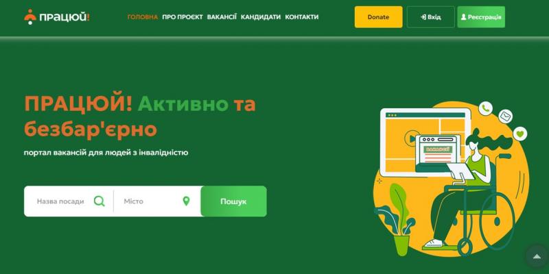 Щоб вплинути на ситуацію з працевлаштуванням в Україні та посприяти інклюзивній відбудові України, благодійний фонд «Асоціація інклюзивної країни» створила онлайн-платформу «Працюй!» — соціальний проєкт, покликаний допомогти людям з інвалідністю швидко знайти роботу, а роботодавцям — розвивати політику рівності та інклюзивності у своїх компаніях.