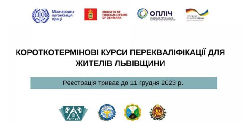 З 11 грудня п. р. на базі закладів професійної, професійно-технічної освіти та Львівського центру ПТО Державної служби зайнятості для жителів Львівської області стартують безоплатні курси з перекваліфікації. Під час навчання слухачі здобудуть часткові кваліфікації.