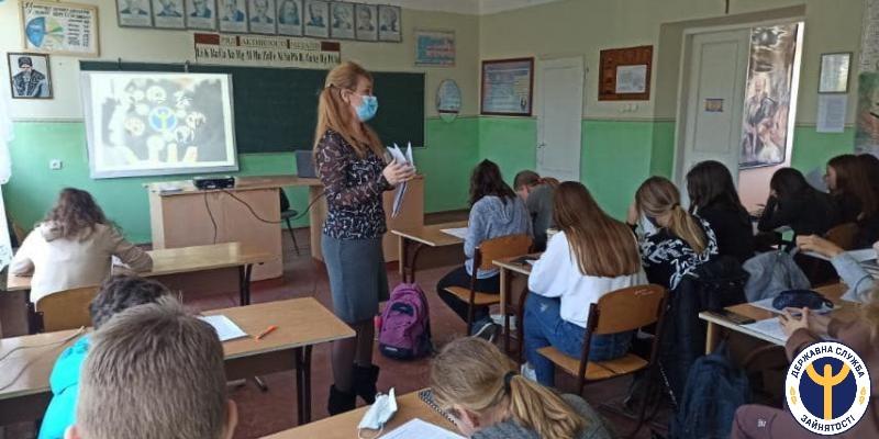 Ще до запровадження «червоного» рівня епідемічної небезпеки спеціаліст Новояворівської міської філії Львівського ОЦЗ Ольга Гоза разом із фахівцем Новояворівського бюро правової допомоги Ольгою Коваль провели профорієнтаційний урок для учнів 8 і 9 класів Кам'янобрідського ЗЗСО