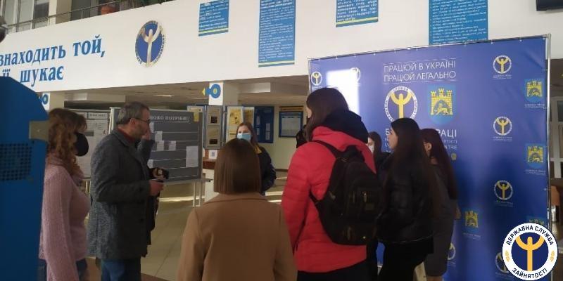 Нещодавно до Львівського міського центру зайнятості завітали студенти Університет банківської справи, які ознайомилися з напрямами діяльності служби зайнятості, з’ясовували законодавчі аспекти, що регламентують діяльність посадовців. Ця інформація допоможе студентам визначити правильні пріоритети для успішної побудови кар’єри після завершення навчання у виші.