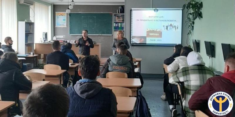 До оголошення на Львівщині посилених карантинних заходів у приміщенні Шклівського ЗЗСО І-ІІІ ст. ім. Мар’яна Корчака провідний фахівець з профорієнтації Новояворівської міської філії ЛОЦЗ Ольга Гоза провела для учнівської молоді профорієнтаційний урок.