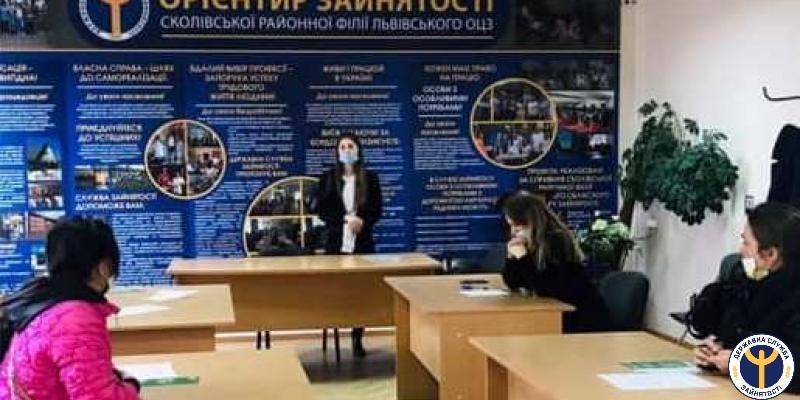 У рамках тижневика «Під одним дахом» у Новояворівській МФ Львівського обласного центру зайнятості відбувся профконсультаційний груповий захід для учасників антитерористичної операції, який модерувала завідувач сектору профорієнтації відділу надання соціальних послуг філії Христина Шавель разом з Оксаною Корбяк, начальником Новояворівського відділу обслуговування громадян Пенсійного фонду України