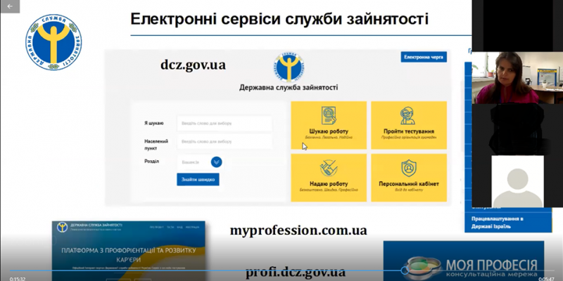 Днями у Пустомитівській районній філії Львівського обласного центру зайнятості для безробітних на платформі Zoom начальник відділу активної підтримки безробітних Тетяна Куцела провела вебінар на тему: «Інформаційний семінар із загальних питань зайнятості»