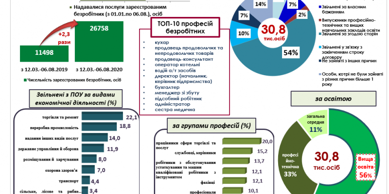 За статистичними даними, якими володіє обласна служба зайнятості, на Львівщині (порівняно з торішніми показниками) у 2,5 рази збільшилася чисельність безробітних, котрі звернулися до центрів зайнятості або філій Львівського ОЦЗ за сприянням у працевлаштуванні, водночас у 2 рази зменшилася потреба підприємств у робочій силі