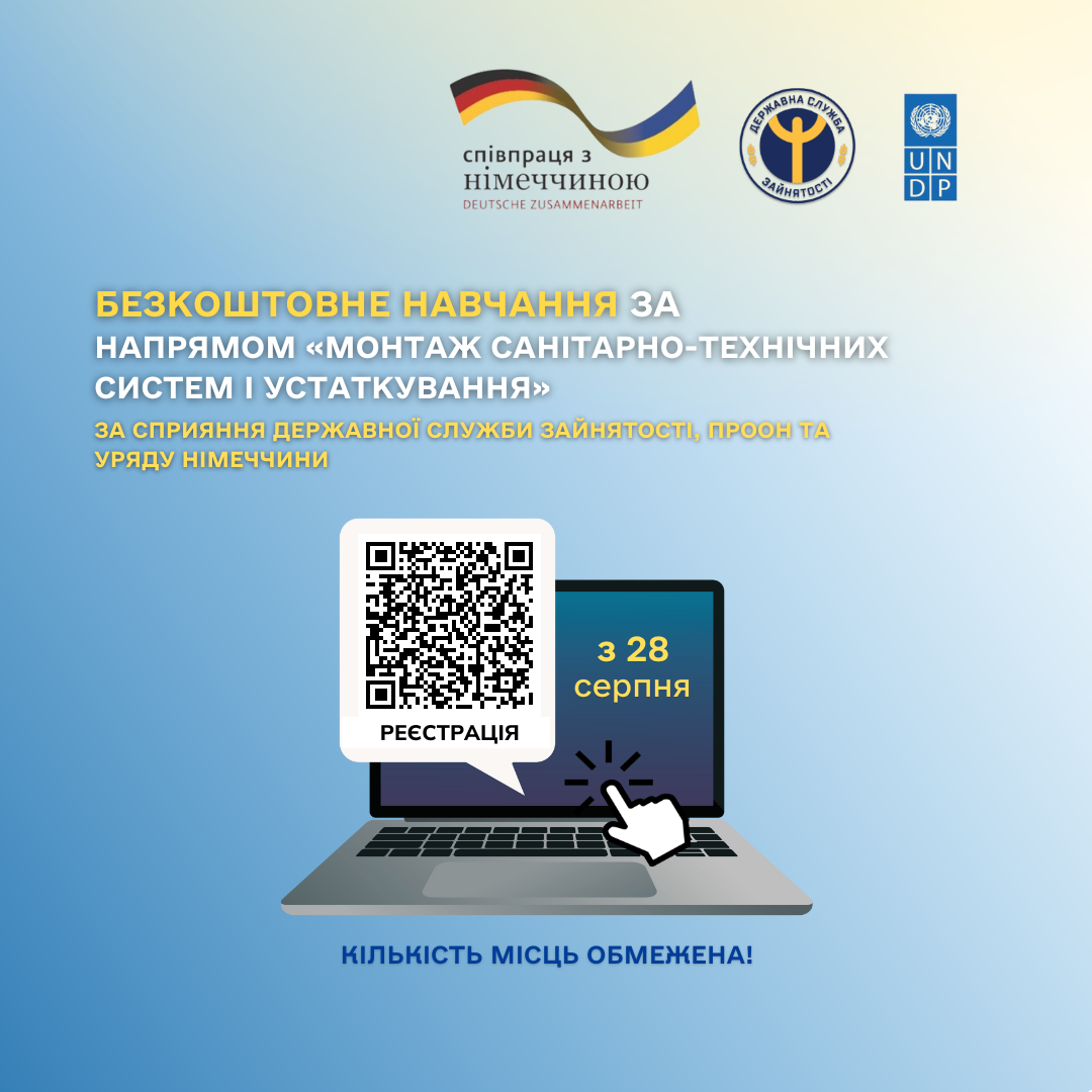 Державна служба зайнятості і ПРООН за підтримки Уряду Німеччини запрошують на безкоштовне навчання за напрямом монтажу санітарно-технічних систем і устаткування