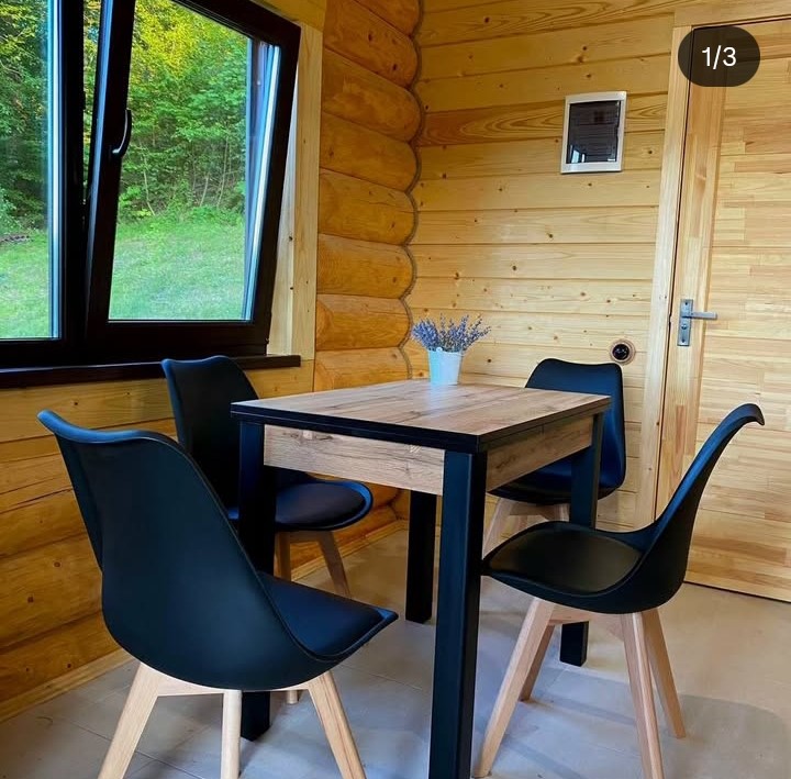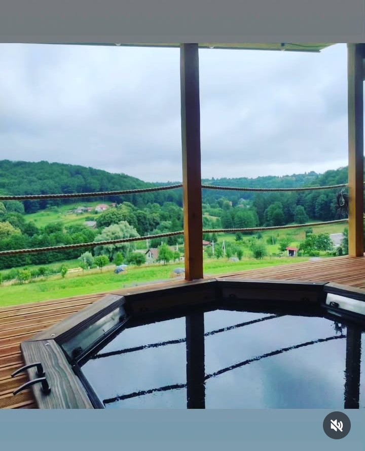 І задум невдовзі став реальністю: світлий інтер’єр котеджу гармонійно доповнений дерев’яними елементами, великі панорамні вікна, шикарна тераса, сауна, чан, басейн, духмяний трав’яний чай з медом – усе це переносить відвідувачів у справжній казковий простір для відпочинку та релаксації.