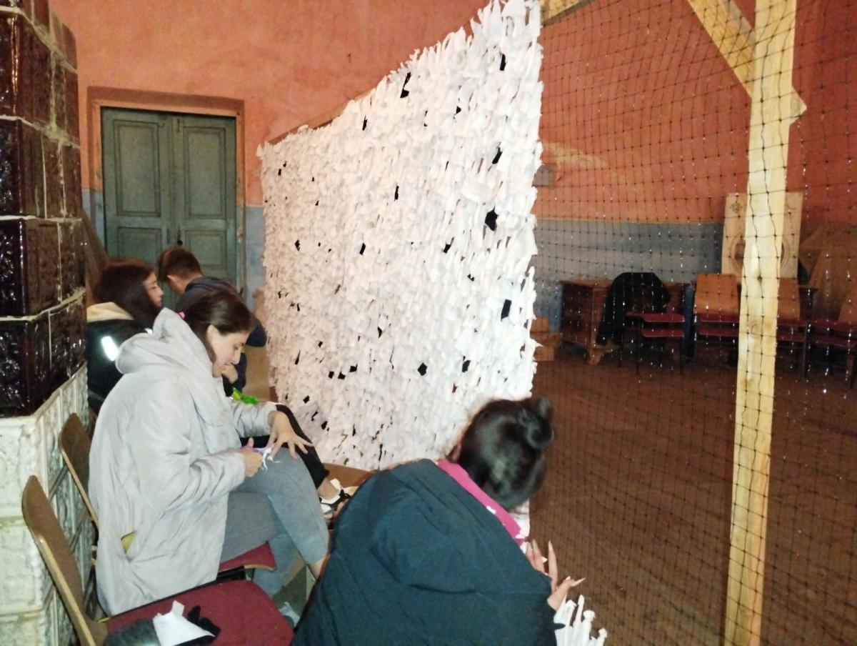 Скеровані на суспільно корисні роботи безробітні разом з небайдужою молоддю щодня у Народному домі с. Ладанці працюють над створенням маскувальних сіток для наших захисників. Їхні спритні руки невтомно працюють, перетворюючи звичайні матеріали на життєво необхідні засоби захисту. Особливо зворушує те, що молоде покоління не просто усвідомлює важливість підтримки військових, але й активно діє, жертвує свій вільний час, енергію та зусилля заради спільної мети – наближення перемоги.