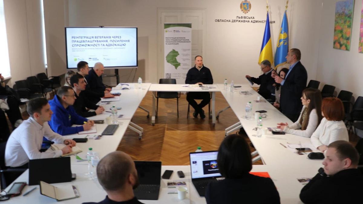 Проєкт презентували представникам структурних департаментів Львівської ОВА (соцзахист та економічна політика), управління ветеранської політики, обласного центру зайнятості, ветеранських середовищ.