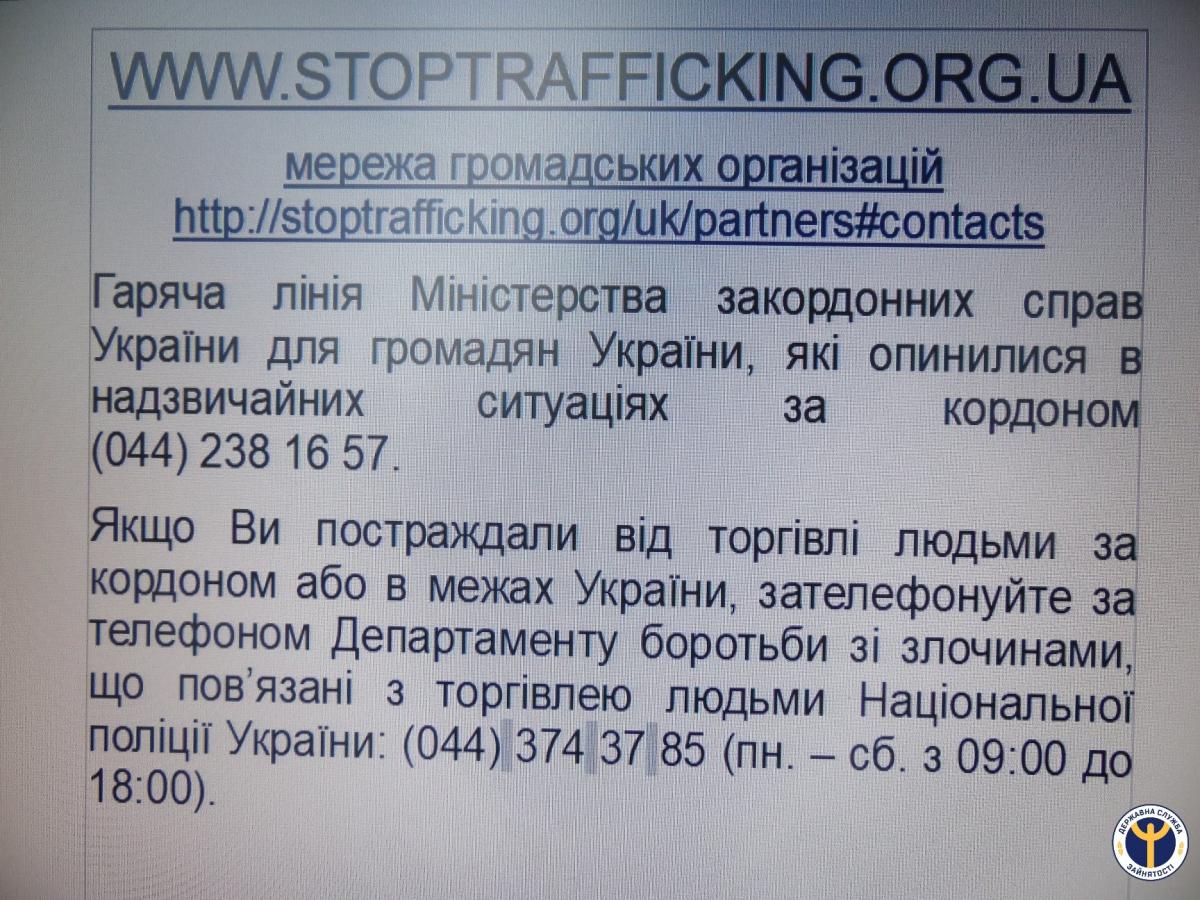 Окремо модератори висвітлили ризики нелегального працевлаштування та переваги укладення офіційних трудових відносин, окреслили небезпеку, яка може підстерігати нелегальних мігрантів. Вони акцентували на аспектах державної підтримки, яка надається в Україні особам, що потрапили у тенета сучасних рабовласників, а також озвучили назви установ, до яких слід звернутися за допомогою у разі виявлення фактів торгівлі людьми.