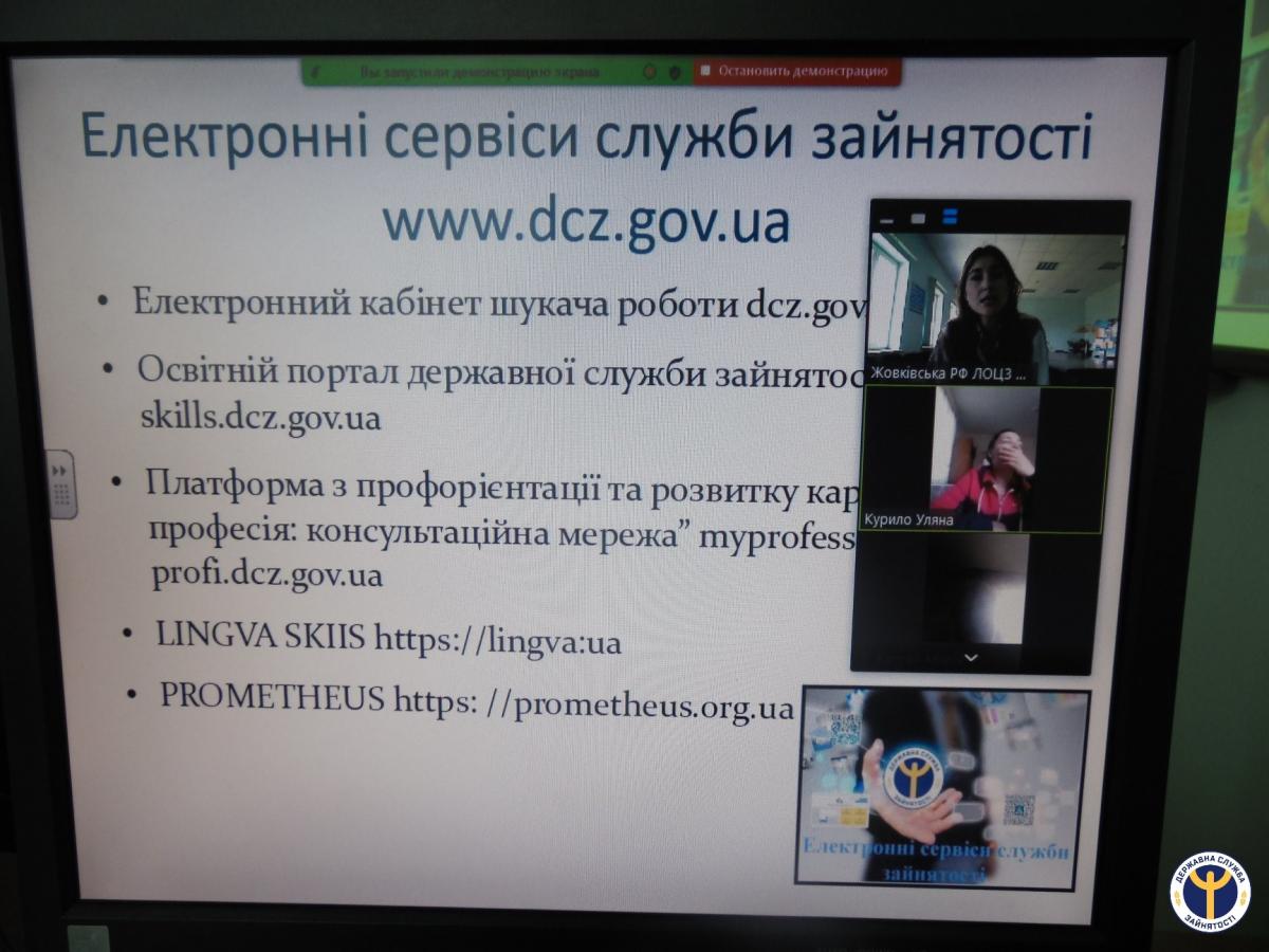 Модератори Інтернет-зустрічі особливу увагу приділяють електронним сервісам ДСЗ. Адже такі веб-ресурси як освітній портал ДСЗ ( https://skills.dcz.gov.ua/), Prometheus (https://prometheus.org.ua/), Coursera ( https://ru.coursera.org/), консультаційна мережа «Моя професія» (https://myprofession.com.ua/), платформа з профорієнтації та розвитку кар’єри (http://profi.dcz.gov.ua/) допоможуть тимчасово непрацюючим особам не тільки самонавчатися та удосконалюватися, але і пройти тестування в онлайн-режимі, і можливо поміняти професію.