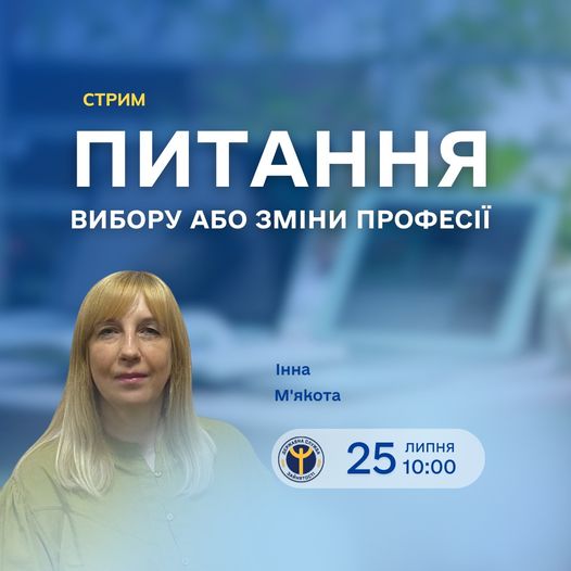 Усі ці та інші питання, що стосуються вибору та зміни професії, ви зможете особисто поставити начальнику відділу професійної орієнтації та психологічної підтримки Департаменту управління персоналом Державного центру зайнятості Ніні М'якоті під час стриму, який відбудеться 25 липня 2023 року. Початок - о 10.00. Питання прийматимуться в чат одразу після початку заходу, відповіді будуть надаватися в прямому етері.