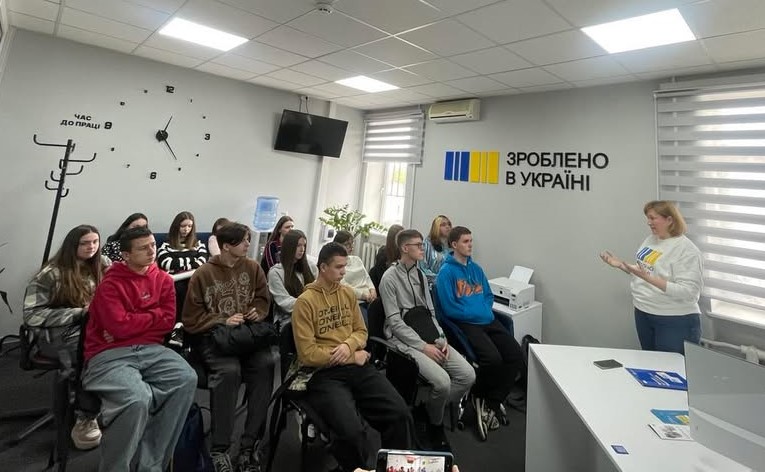 Гості відвідали офіс «Зроблено в Україні», де ознайомилися з його діяльністю в межах Всеукраїнської економічної платформи та грантовими програмами урядового проєкту "єРобота", зокрема, можливістю отримання мікрогранту розміром до 150 тисяч гривень для молоді віком від 18 до 25 років.