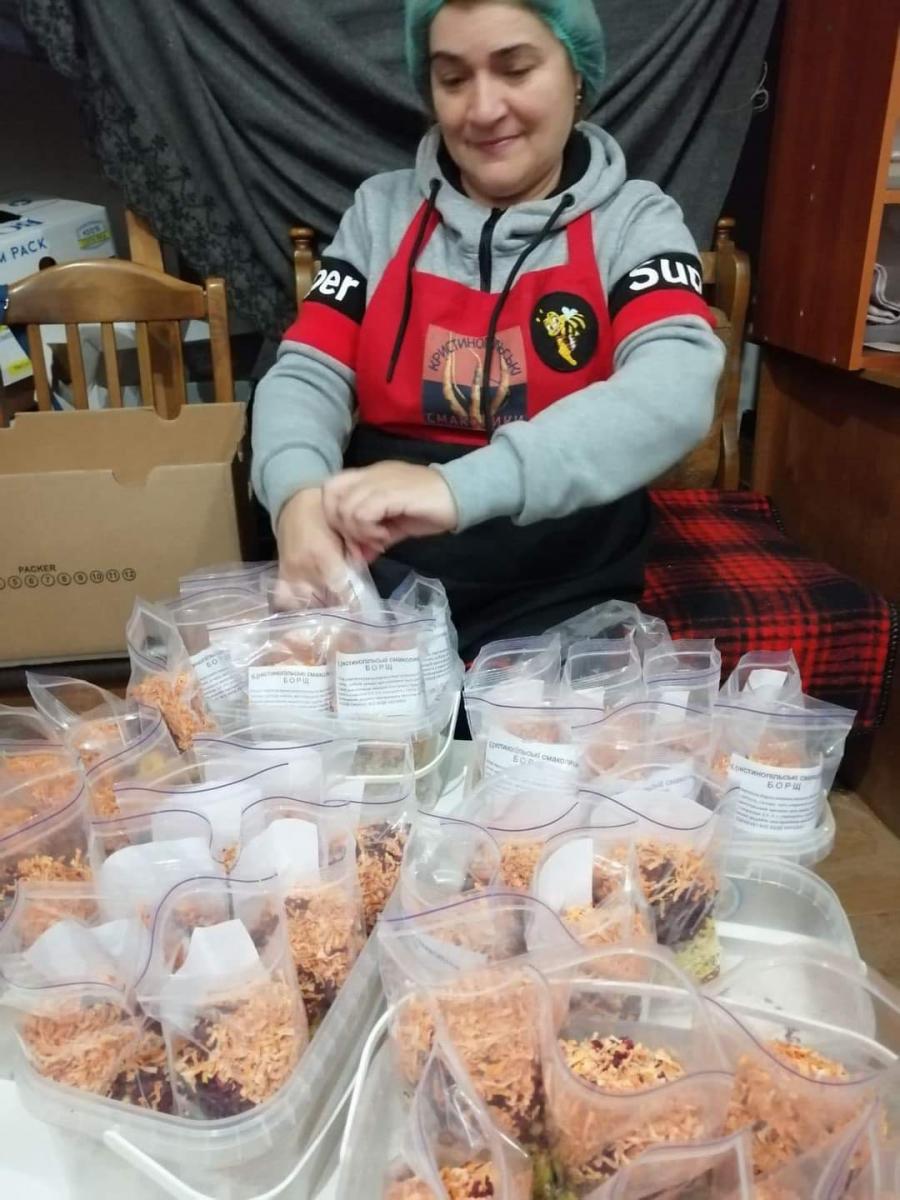 Наразі тимчасовою зайнятістю охоплено 15 осіб. Вони фасують і роздають гуманітарну допомогу, готують наїдки, у тому числі борщі та супи, шиють на фронт кікімори, складають для захисників аптечки тощо.
