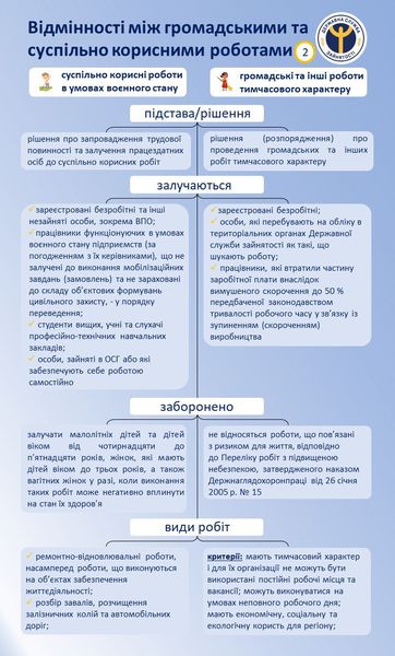 У чому полягає різниця між суспільно корисними та громадськими роботами? Дізнайтесь на інфографіці.