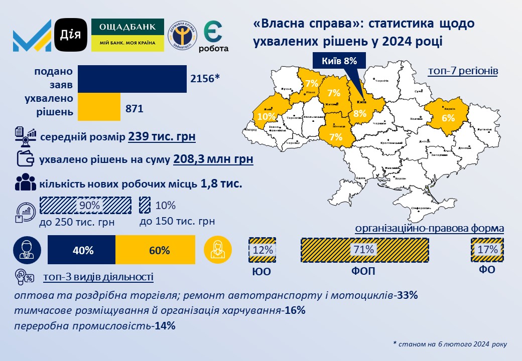 Файл з переліками номерів заяв, які набрали найбільшу сукупну кількість балів за програмою "Власна справа", можна завантажити тут