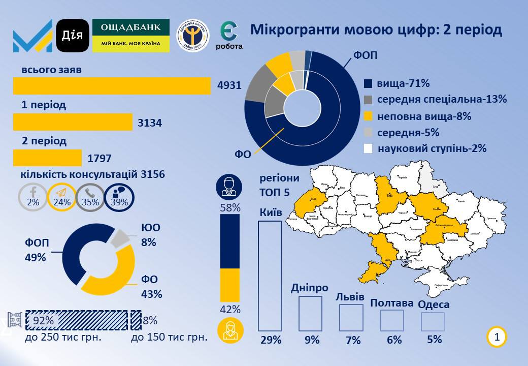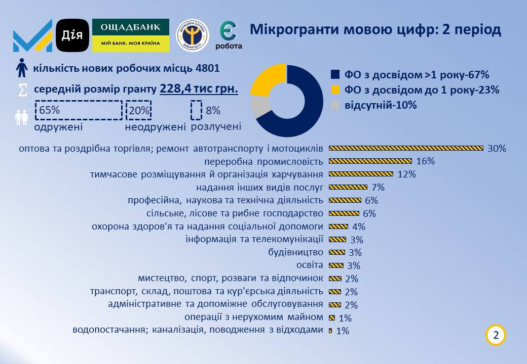 Упродовж другого періоду до центрів зайнятості подано 1797 заяв на отримання мікрогранту для створення або розвитку бізнесу.