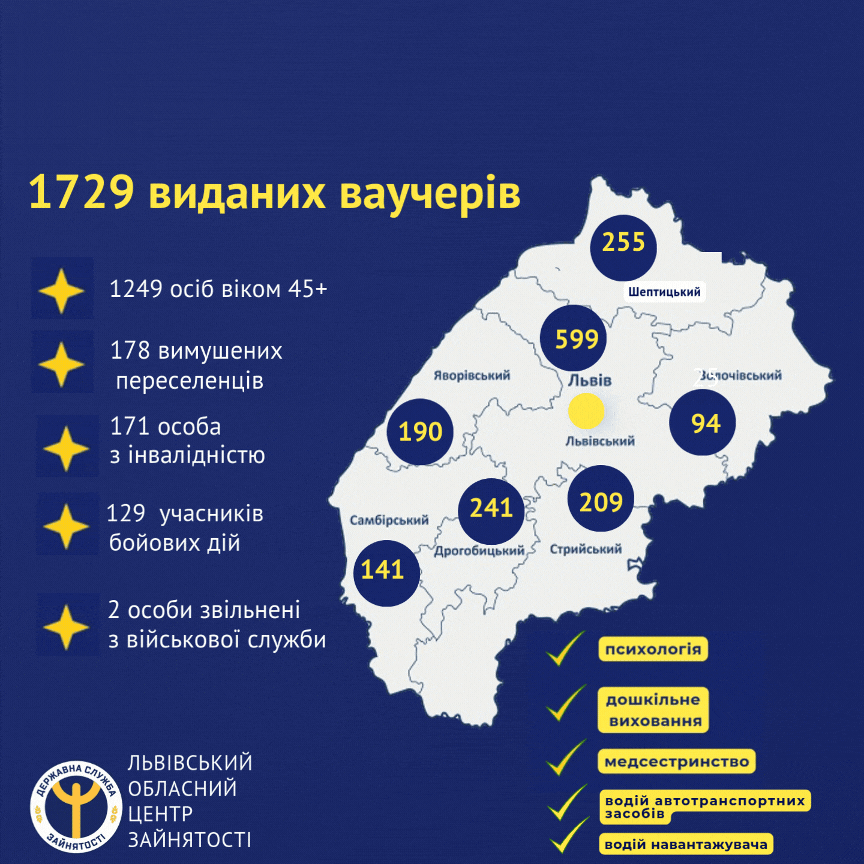У 2024 році 1729 осіб на Львівщині отримали ваучер на навчання від служби зайнятості та можливість безкоштовно опанувати нову професію чи спеціальність. За цим показником на тлі інших регіонів наша область входить до трійки лідерів.