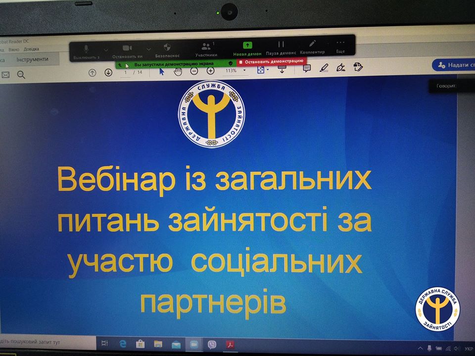Днями у черговому онлайн-заході із загальних питань зайнятості взяли участь і соціальні партнери, і одинадцять безробітних. Під час ZOOM-конференції йшлося про основні складові формування індивідуального плану пошуку роботи, умови, тривалість і алгоритм призначення виплати допомоги з безробіття. Чимало уваги було зосереджено на тенденціях розвитку локального ринку праці та пропозиціях роботи у карантинний період.