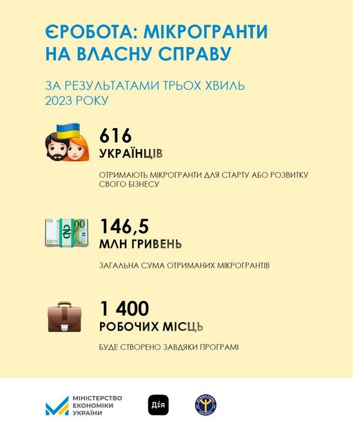 «Власна справа»: 616 українців отримають 146,5 млн грн за результатами трьох хвиль подачі заяв на мікрогранти