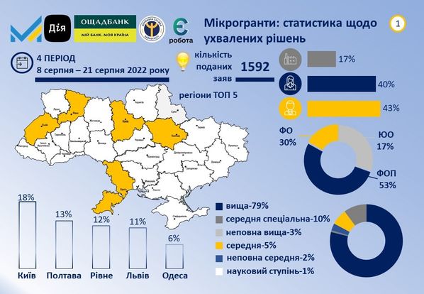 У рамках реалізації державної програми “єРобота” щодо отримання мікрогранту на створення або розвиток бізнесу позитивне рішення прийнято по 154 заявниках.