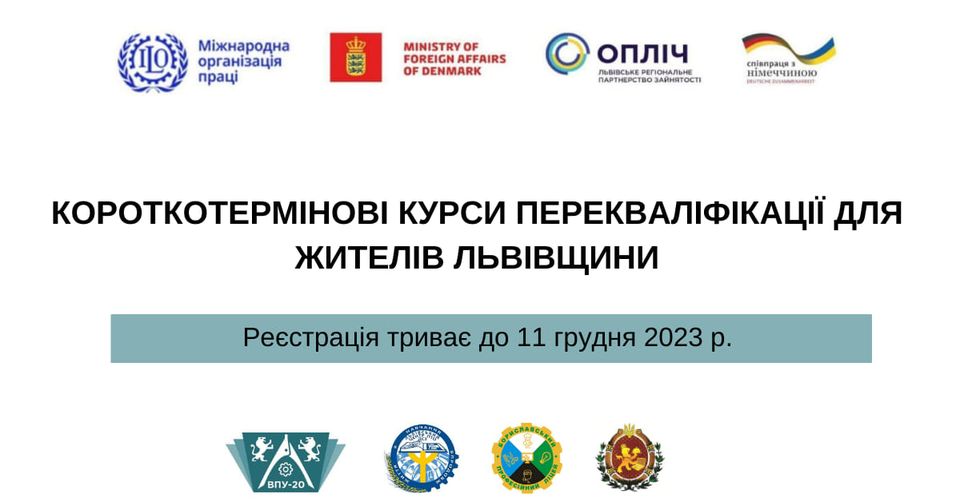 З 11 грудня п. р. на базі закладів професійної, професійно-технічної освіти та Львівського центру ПТО Державної служби зайнятості для жителів Львівської області стартують безоплатні курси з перекваліфікації. Під час навчання слухачі здобудуть часткові кваліфікації. Загальна кількість учасників становить 60 осіб.