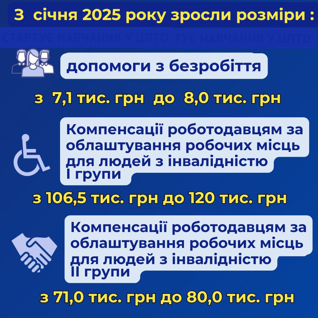 З 1 січня 2025 року переглянуті розміри деяких виплат і компенсацій, які адмініструє Державна служба зайнятості.