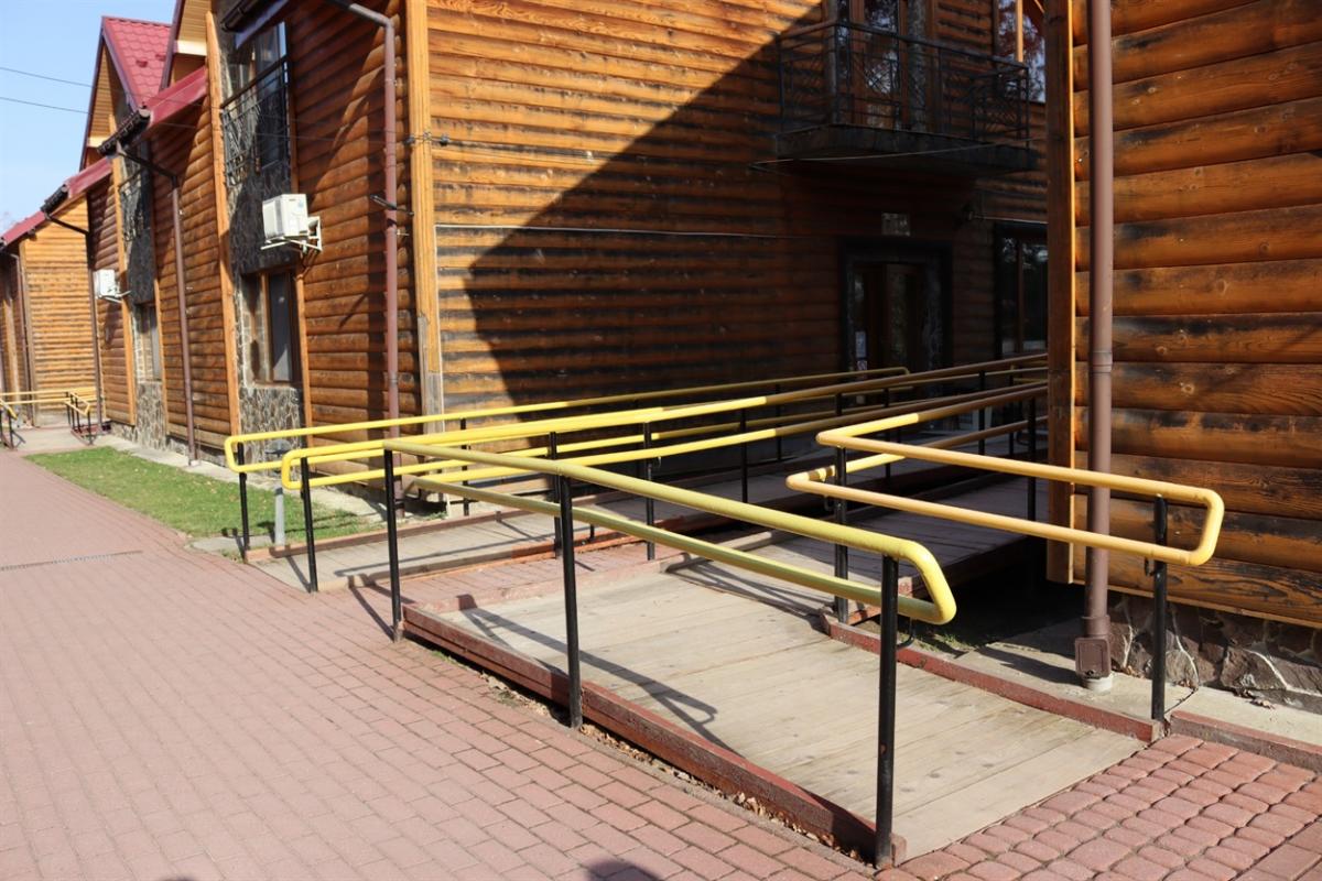 Насамперед це стосується пандусів у загальнодоступних місцях, до того ж вони є біля кожного будинку, в якому проживають пацієнти. Також є розширені дверні пройоми та адаптовані санвузли у номерах тощо. Басейн облаштований спеціальним підіймачем “Гульмана”, що допомагає пацієнту в будь-якому стані підійматися та опускатися у воду для занять із фізичним терапевтом. Такий самий підіймач є й у ванному відділенні, який теж допомагає пацієнтам на кріслах колісних або ж лежачим отримувати послуги. Влітку 2023 року на території медичного реабілітаційного центру встановили дитячий інклюзивний майданчик.